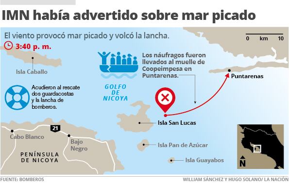 Añadió que ellos zarparon de Puntarenas sin viento y con la marea en calma, pero al regreso de la isla todo se puso distinto, se complicó el tiempo y sucedió el vuelco.