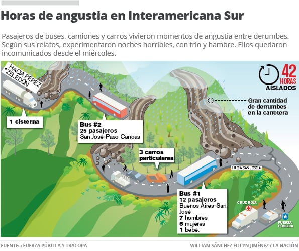 Rescatan a pasajeros atrapados en bus, tras 42 horas en el cerro de la Muerte