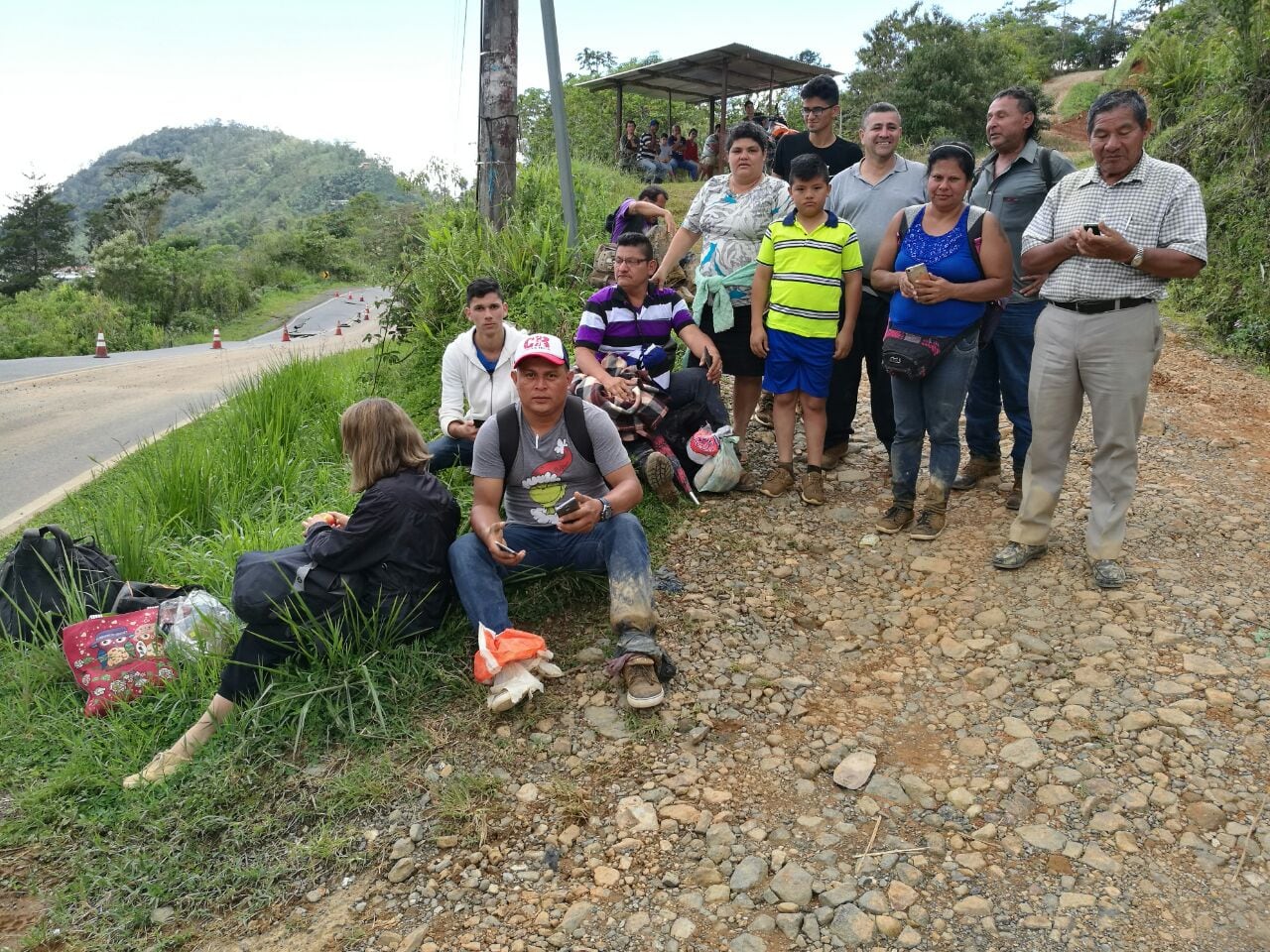 Algunos de los ocupantes de uno de los buses atrapados en el sector de Laguna de Pérez Zeledón. (Cortesía de Noemy Rojas)