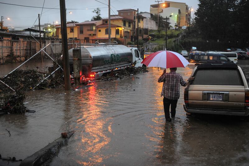 En San José, los principales problemas sucedieron en las inmediaciones del antiguo plantel de la compañía Dos Pinos en barrio Luján, donde una cabeza de agua, que bajó por el río Ocloro, afectó tres casas y 13 automóviles de los empleados. Otro punto fue en el barrio La Puñalada de Sagrada Familia, donde siete familias que residen cerca del río María Aguilar, tuvieron que dejar sus viviendas, dijo la CNE.