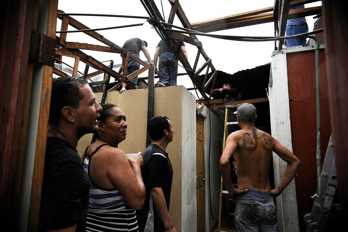 En la ciudadela Corina Rodríguez, Alajuelita, hubo cortes intermitentes del fuido eléctrico debido a cortocircuitos provocados por las latas sueltas. (Rafael Murillo)