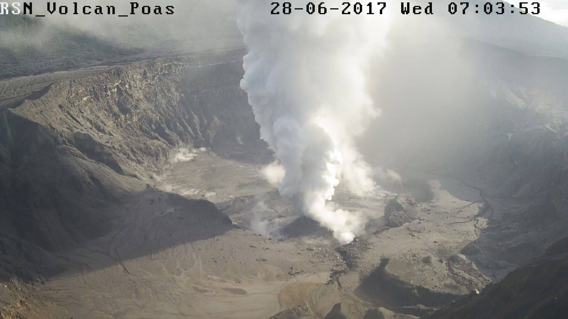 "Nuevamente el día de hoy (miércoles) se aprecia una importante columna de vapor de agua, gases y aerosoles", mencionó Mauricio Mora, vulcanólogo de la Red Sismológica Nacional (RSN).