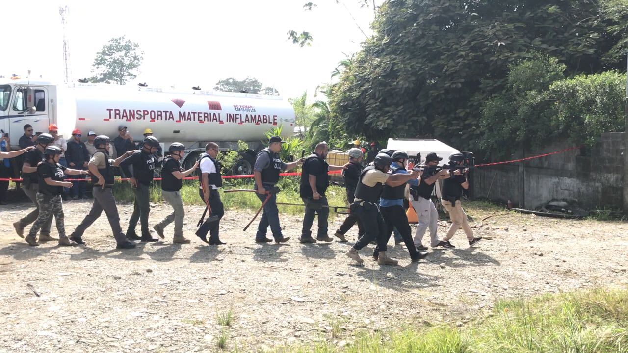 A las 2:35 p. m., se allanó el inmueble, en el que los agentes encontraron dos tanquetas con gasolina súper. En las afueras también había dos camiones cisternas llenos de combustible que había sido sustraído del oleoducto.