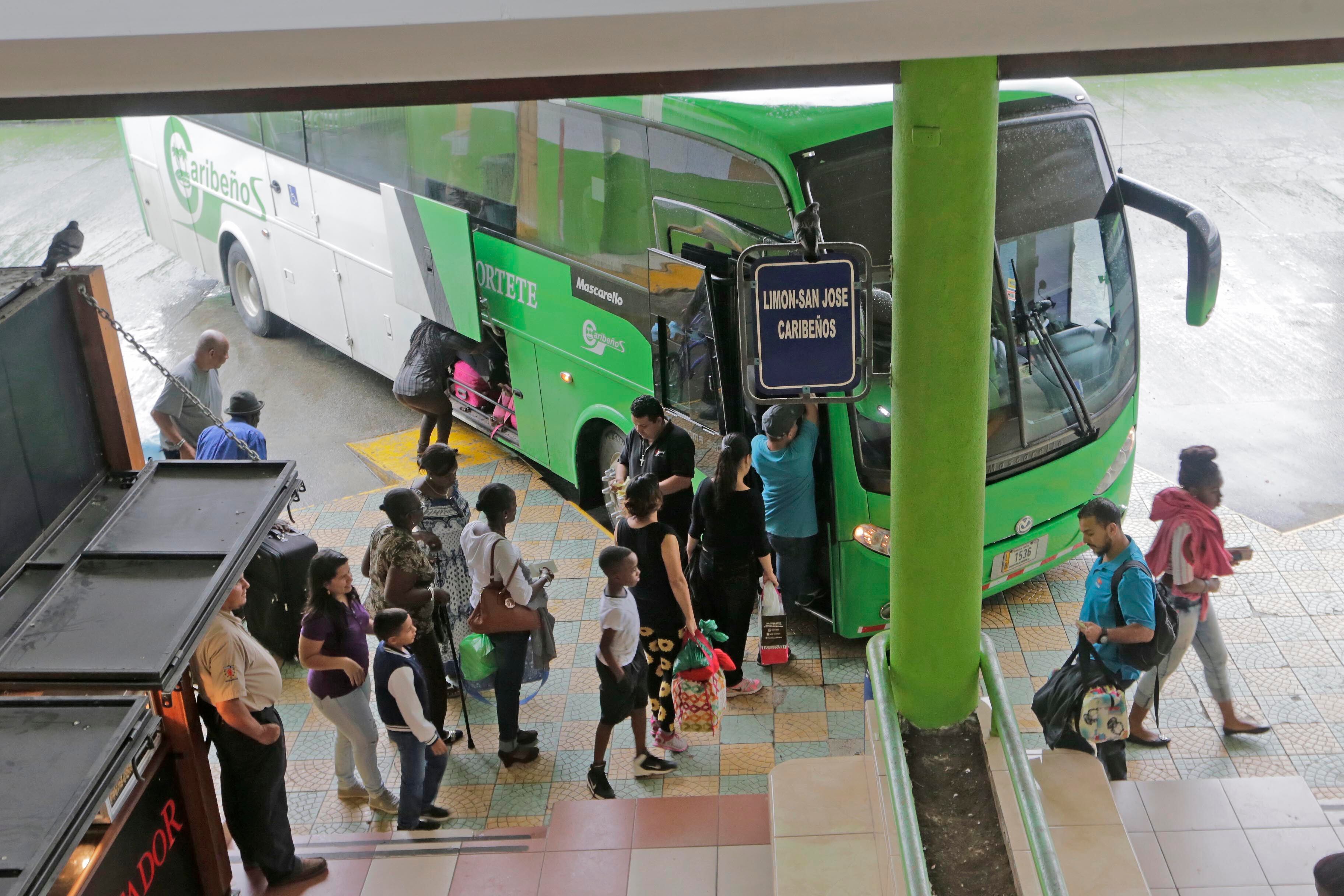 Los habitantes de Limón toman el bus para evacuar la ciudad a pocas horas antes de la llegada de la tormenta Otto. (Albert Marín)