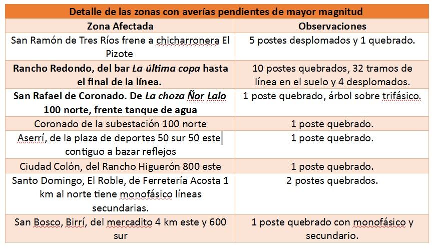 "Se está realizando el inventario de atención de los daños más grandes en Rancho Redondo, Cascajal y Guadalupe centro", informó la CNFL.