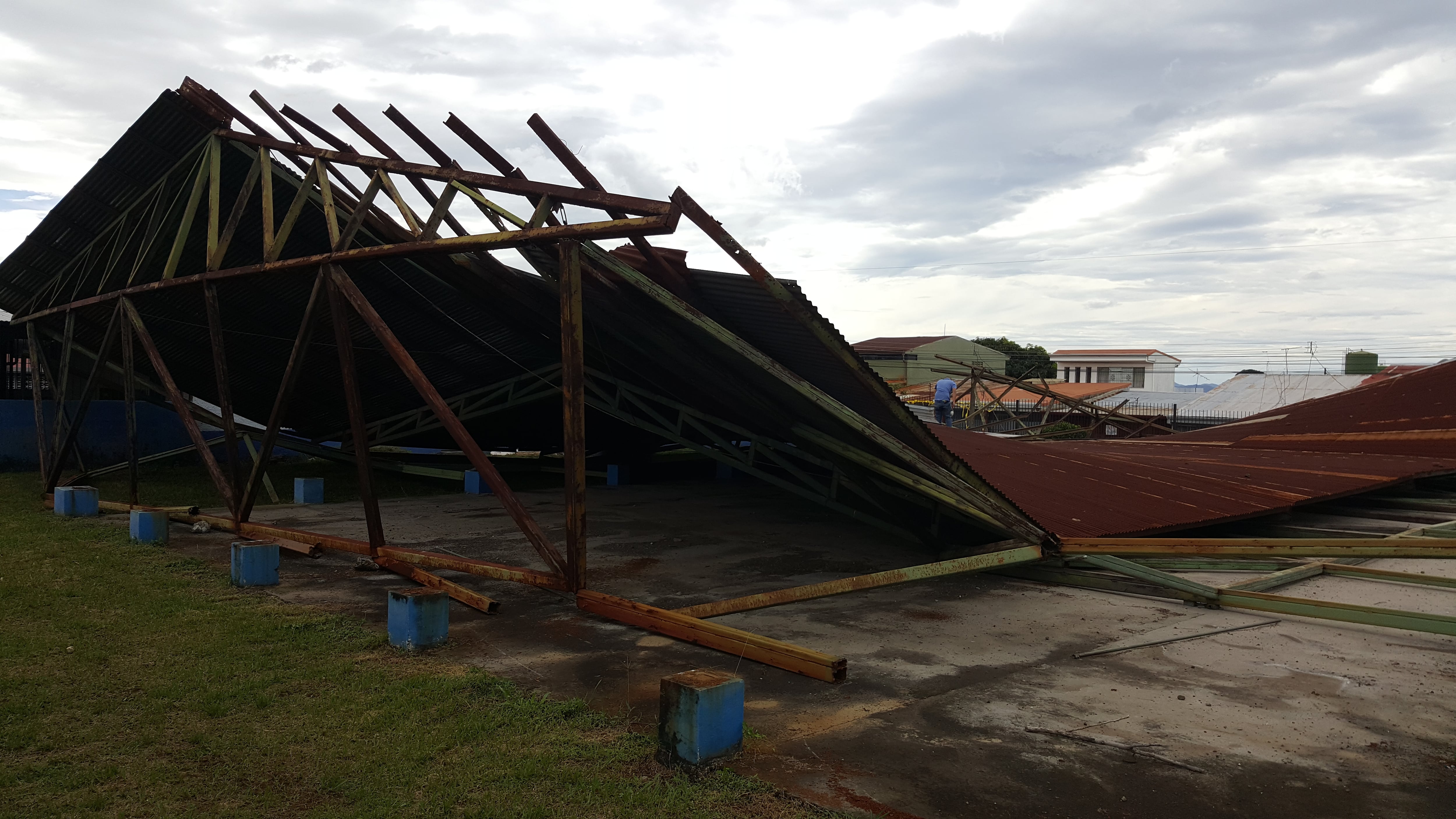 La mañana de este lunes, los fuertes vientos en comunidades aledañas al centro Alajuela botaron el gimnasio de la Escuela Guadalajara, en Pueblo Nuevo.