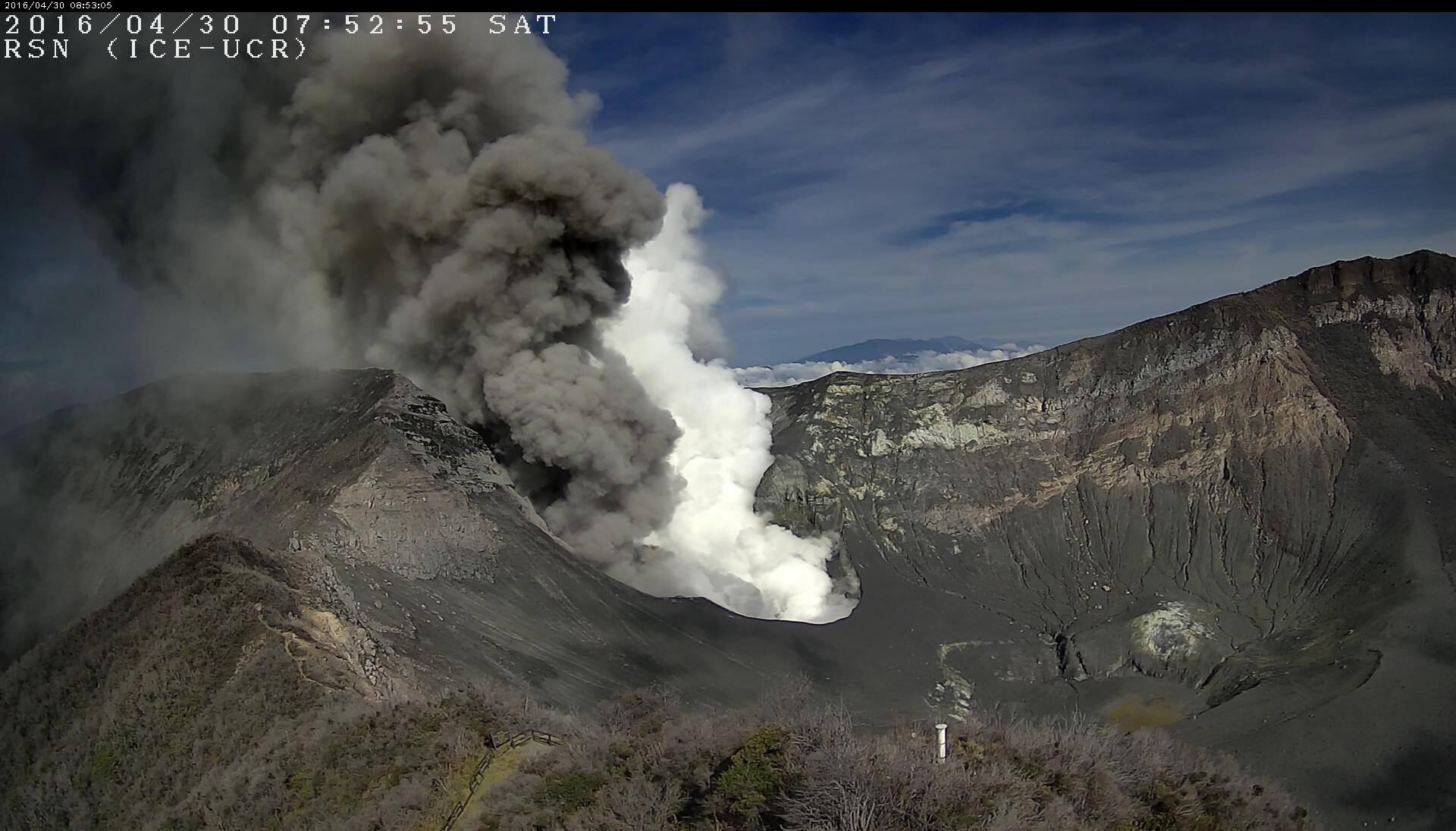 A las 11:15 a. m. el informe de la RSN reveló una disminución fuerte en la cantidad de ceniza emanada en el volcán Turrialba en relación con la actividad de horas antes; sin embargo, los microsismos por la actividad del volcán se mantienen.