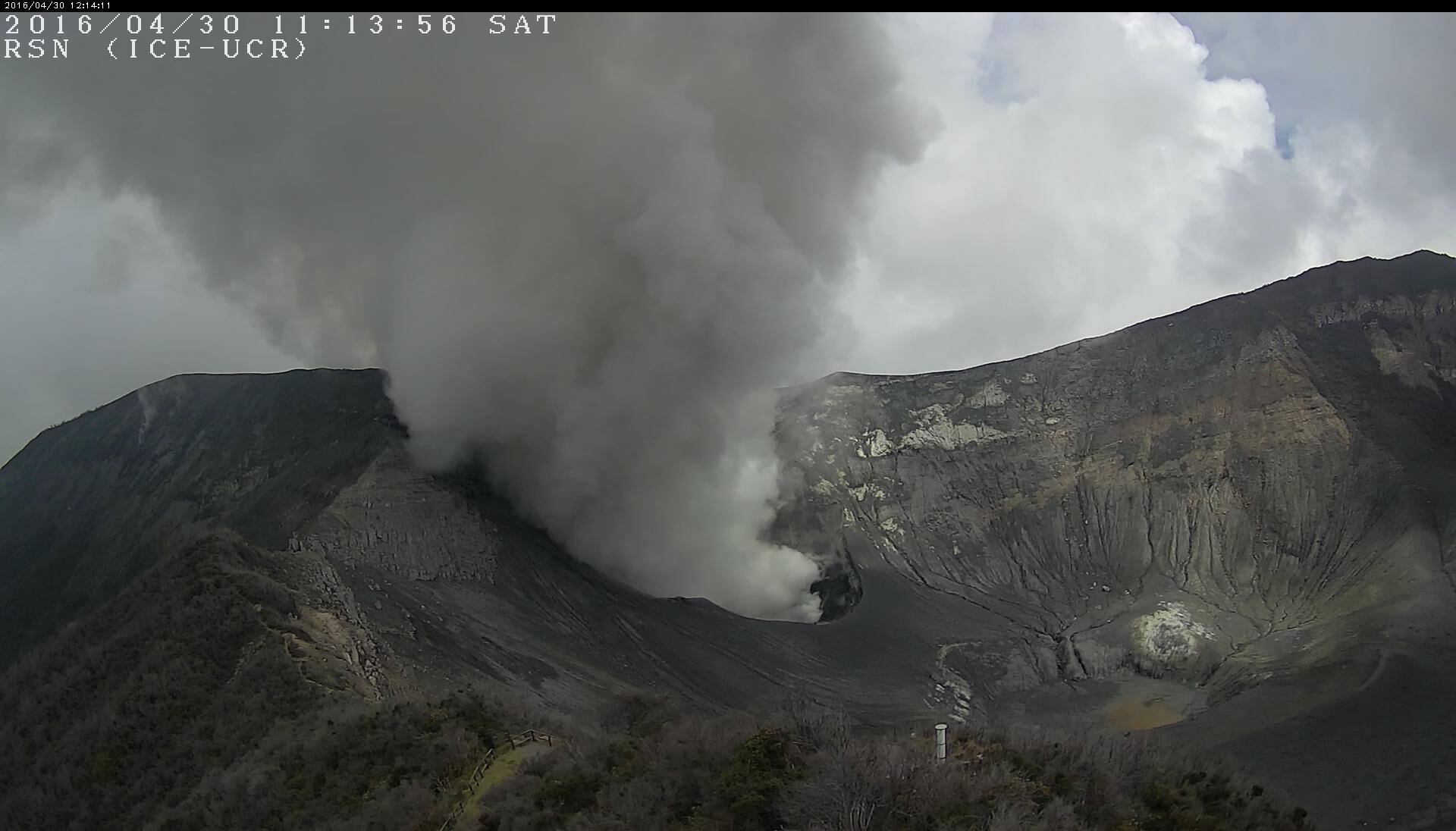 El volcán Turrialba registró emanación de ceniza y vapor de agua desde las 3 a. m. de este sábado. Poco antes de la 1 p. m. la actividad se detuvo, pero la salida de vapor de agua y gases se mantenía.