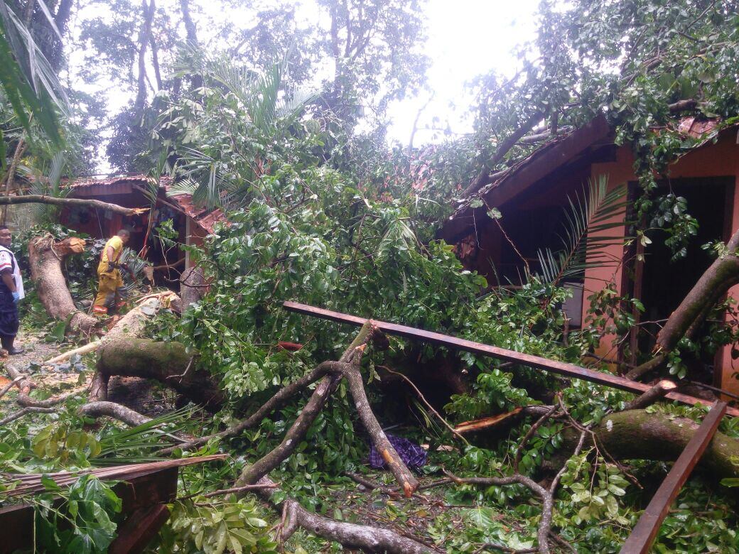 En Puerto Viejo de Limón una familia conformada por cinco personas estuvo atrapada durante varias horas luego de que un árbol cayera sobre su vivienda.