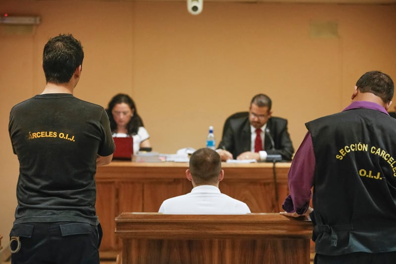 El calor en la sala de juicio provocó la queja de todas las partes. La jueza Mauren Sancho recurrió a unas hojas para hacer viento | JORGE ARCE (Jorge Andres ARCE)