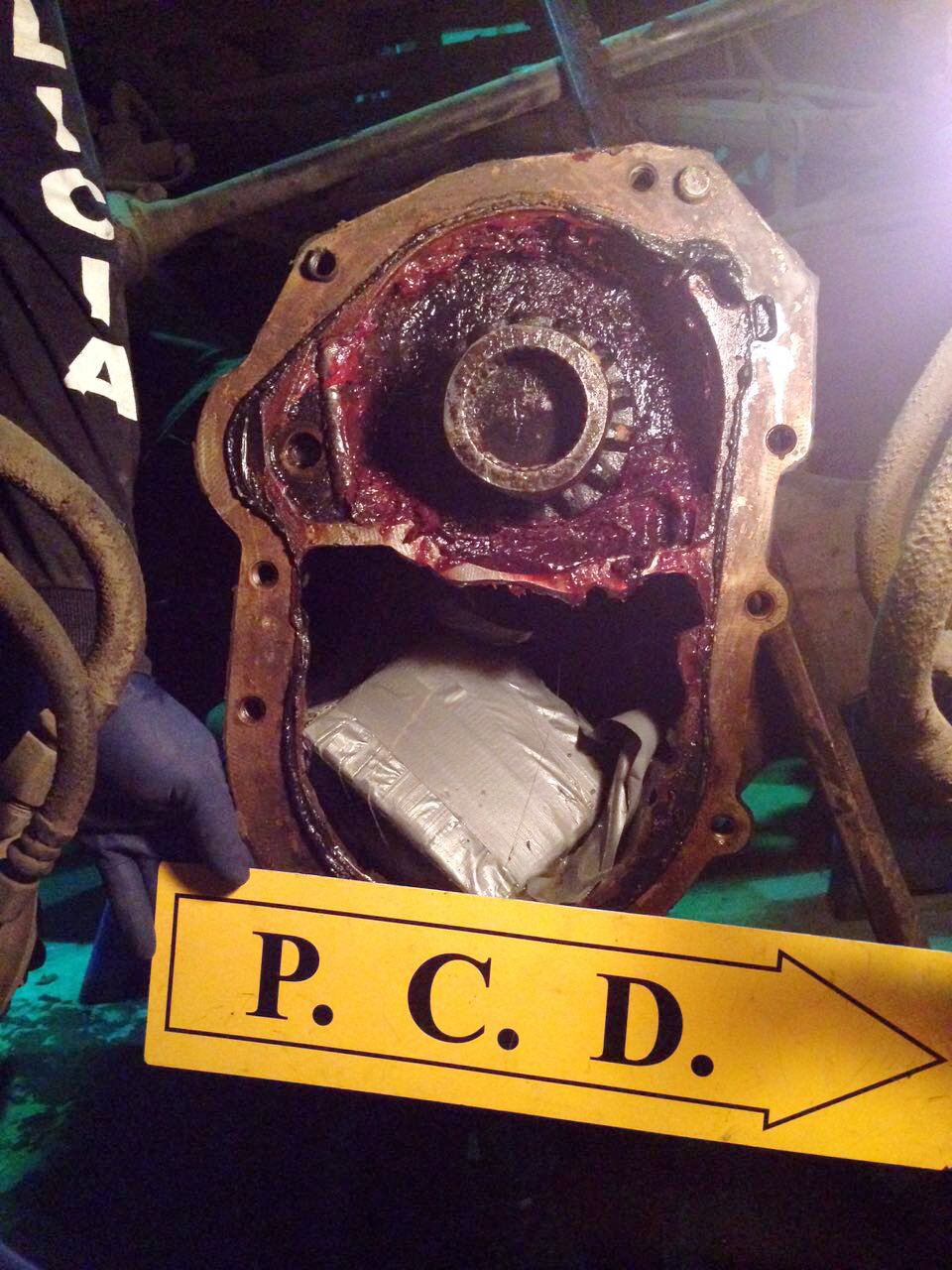 De acuerdo con las autoridades, los agentes localizaron billetes de $20, $50 y $100 ocultos en el diferencial del furgón (barra que une las llantas de tracción de un vehículo).