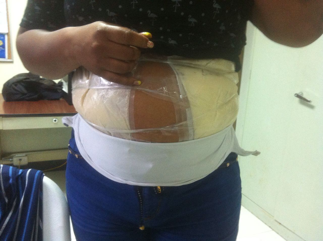 La droga la llevaba bajo la blusa y un tipo de faja blanca, la cual aplastaba la cocaína que estaba en un plástico.