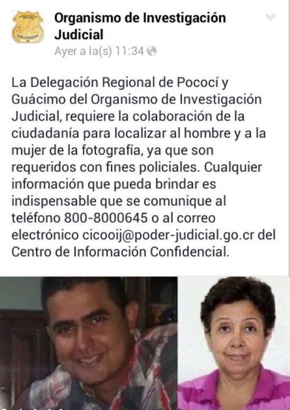 De acuerdo con el informe policial, la mujer –quien se jubiló del Poder Judicial– y un hijo suyo –un odontólogo– desaparecieron luego de que el Tribunal de Familia de Pococí, Limón, les ordenara devolver al nieto de la exjueza e hijo del dentista, a la madre del menor.