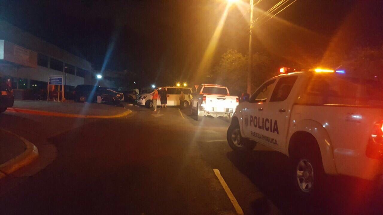 Efectivos de la Fuerza Pública custodian la noche de este lunes las instalaciones del Complejo de Ciencias Forenses, ubicado en San Joaquín de Flores, con el fin de brindar seguridad a las personas que en los próximos minutos reiniciarán las autopsias paralizadas por la huelga judicial.