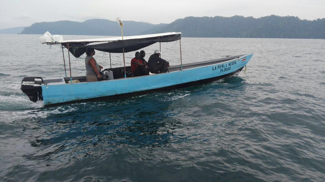 El Servicio Nacional de Guardacostas detuvo, la mañana de este sábado, a un costarricense de apellido Caballero quien transportaba en una lancha a tres africanos. (Ministerio de Seguridad Pública)