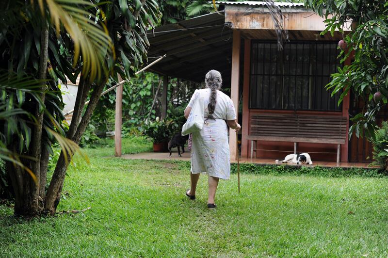 La víctima, identificada como María Ruth Chinchilla Gamboa, de 65 años, presentaba una herida de unos 20 centímetros de largo, provocada con un machete. Fue llevada por una ambulancia de la Cruz Roja de Escazú al Hospital San Juan de Dios.