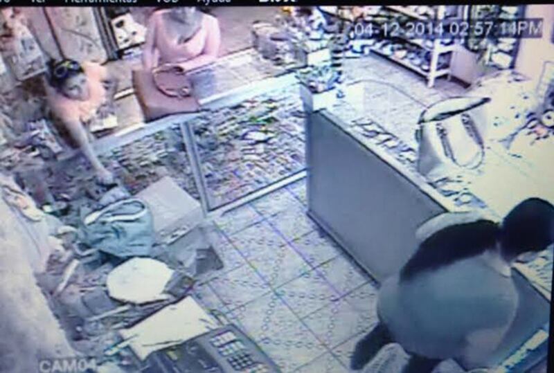 Una hora después, utilizó la misma metodología en dos almacenes en Puerto Viejo. Uno de estos últimos la registró en las [[BEGIN:INLINEREF LNCVID20150112_0002]]cámaras de seguridad[[END:INLINEREF]].