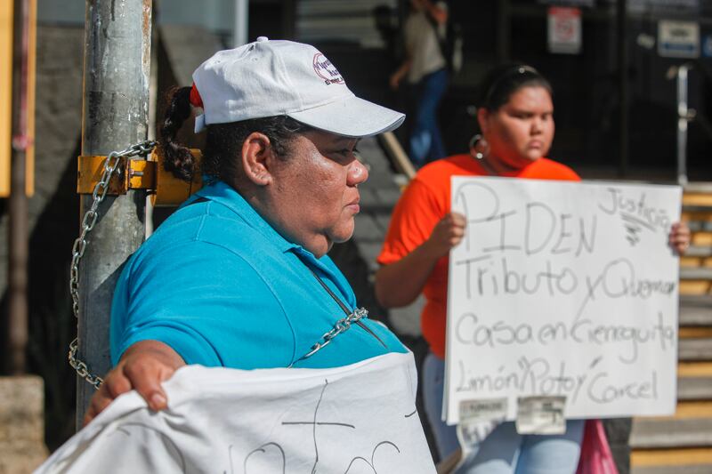 Mujer se ata a poste para exigir justicia en Limón