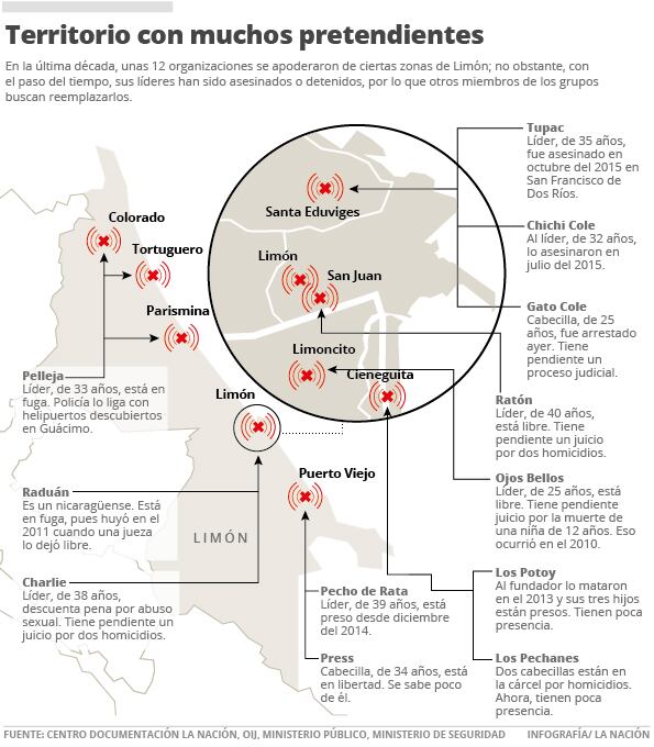 Lucha de dos décadas. La violencia en Limón, en la cual predominan tiroteos en vía pública, data de desde hace más de 20 años y ocurre de manera cíclica, dijeron expolicías y actuales jefes policiales, quienes hablaron sobre bandas y sus líderes, sin que se mencionen sus nombre.