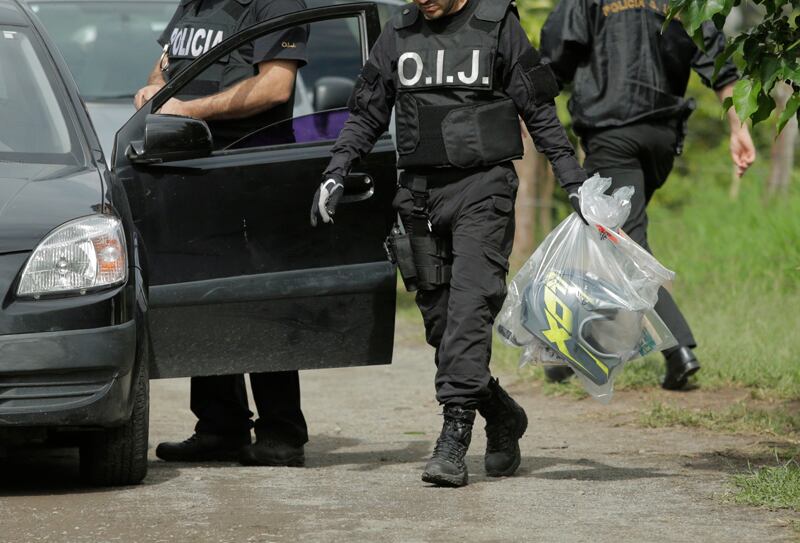 Como resultado de los allanamientos, la Policía Judicial decomisó una pistola, cascos para motocicleta y un vehículo que supuestamente emplearon para cometer los delitos.