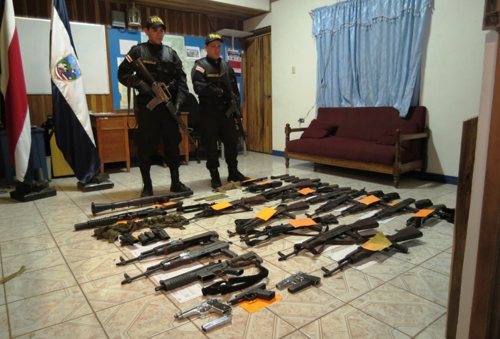 El ministro de Seguridad Pública, Mario Zamora, explicó que el armamento ubicado en Cutris en zona norte de Alajuela, es nuevo y no descarta que se trate de una red dedicada al trasiego de armas de guerra.