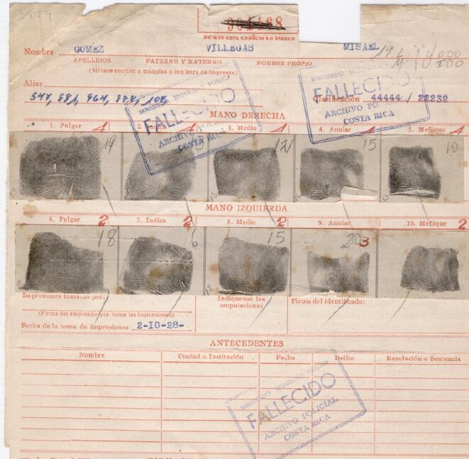 Una vez impresas, las huellas son almacenadas en físico y los datos de la clasificación Henry se digitalizan, lo que han convertido el archivo dactiloscópico costarricense como el más grande de Centroamérica, con cerca de 3,5 millones de tarjetas decadactilares.
