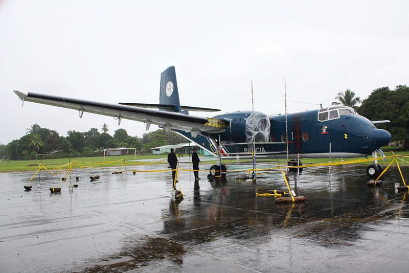 Desde el 24 de junio, la aeronave “Havilland Canada DHC-4 Caribou” está varada en un aeródromo de Barra del Colorado, llevando agua y sol. Ese día, hacia las 8:50 a. m., el Caribú tuvo que aterrizar de emergencia luego de que el motor recién instalado en el ala derecha presentó fallas mecánicas.