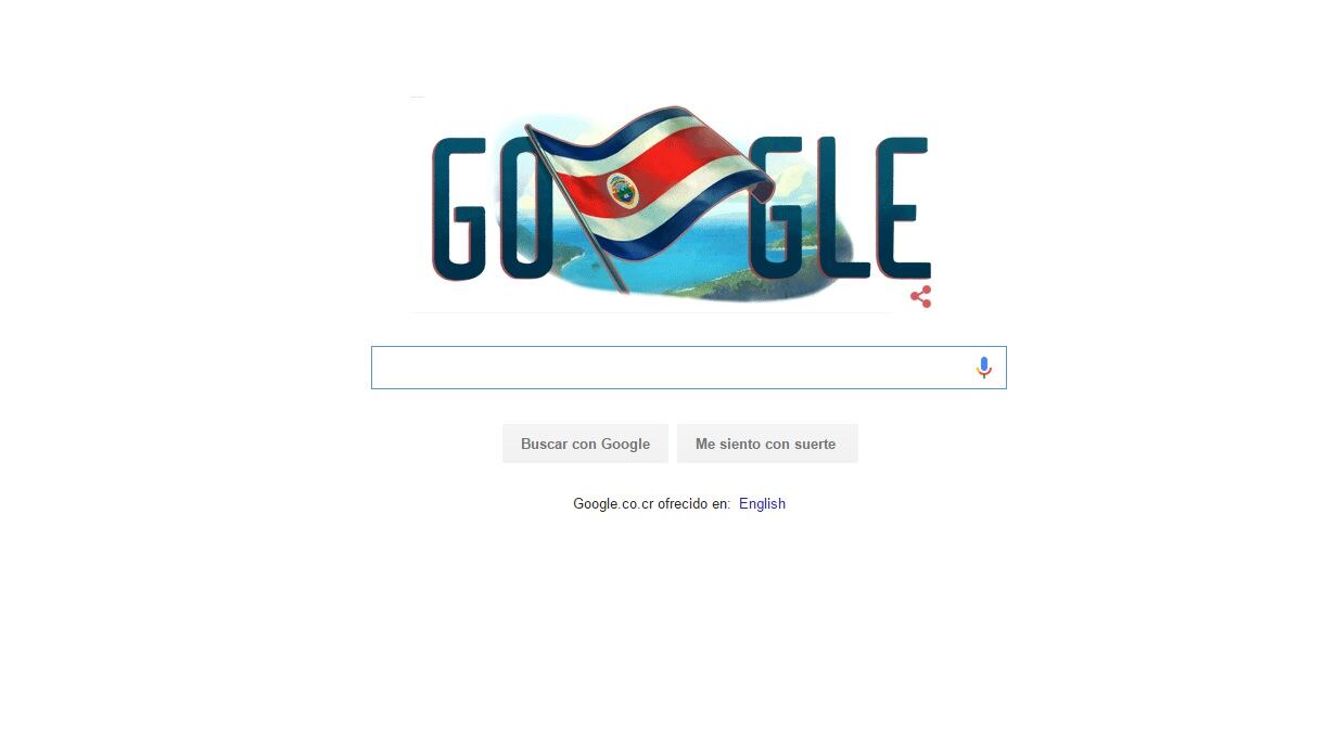 Costa Rica festeja este martes 194 años de Independencia y, para celebrarlo, uno de los principales sitios de búsqueda en la Internet, Google, colocó en su página de inicio un doodle que muestra la imagen del Pabellón Nacional.