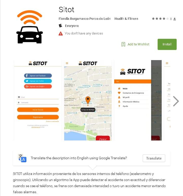 SITOT tiene otras funciones, como un botón de pánico para reportar robos o incendios y es posible introducirle información médica del usuario.
