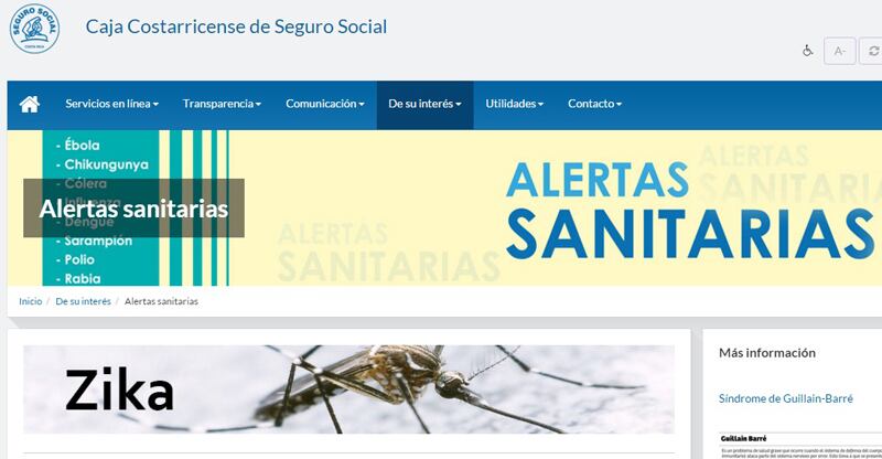 Prevención. Por medio de un comunicado de prensa, la CCSS recordó que las recomendaciones para evitar esta nueva enfermedad son las mismas que se aplican para combatir el dengue y la chikunguña, transmitidas por el mismo zancudo: el Aedes aegypti .