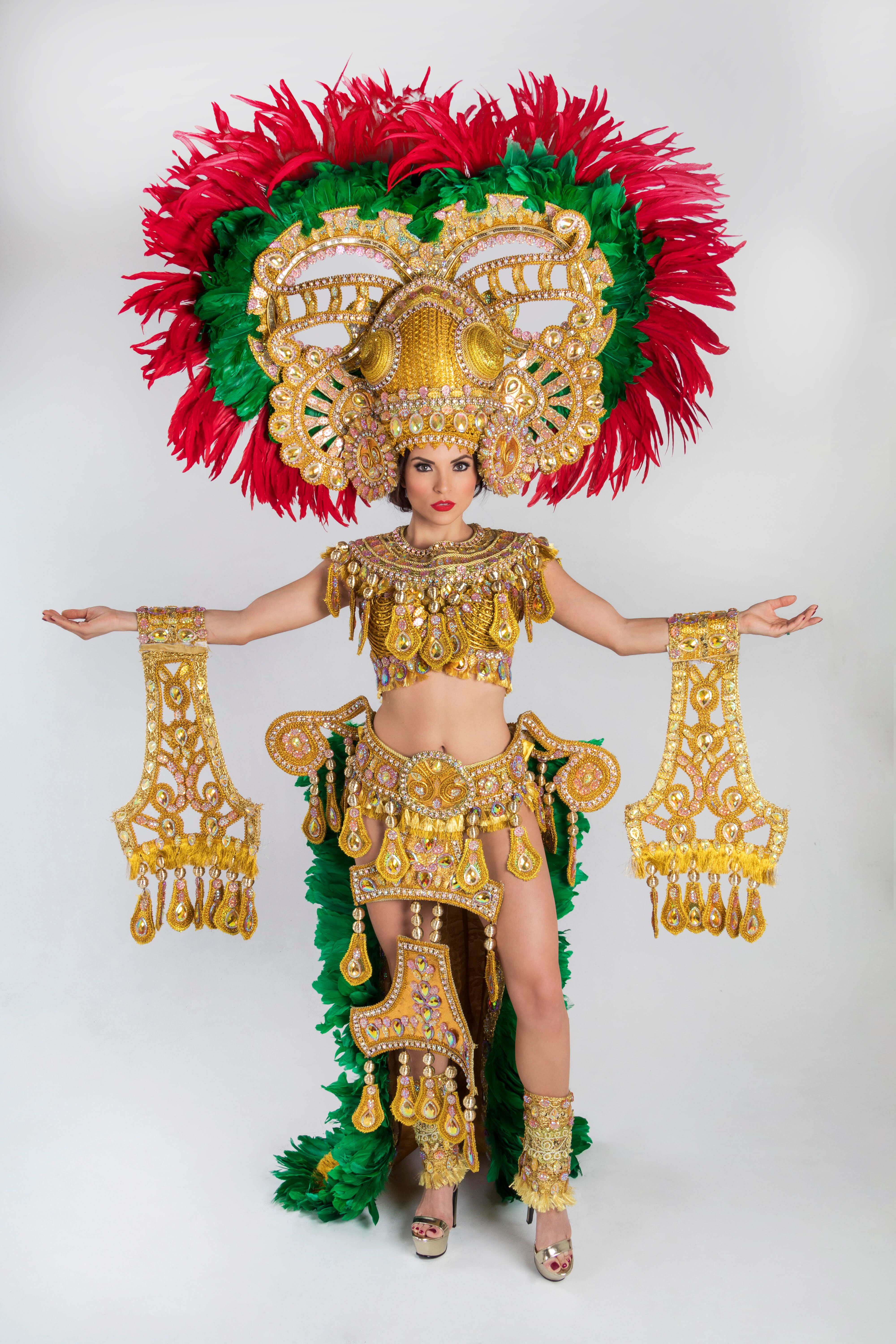 “El minucioso trabajo de este traje nos transporta a las finísimas y detalladas labores de nuestros primeros habitantes. Así la representante luce esta fantasía en honor al Museo de Oro de Costa Rica”, agregó el creador de la pieza.