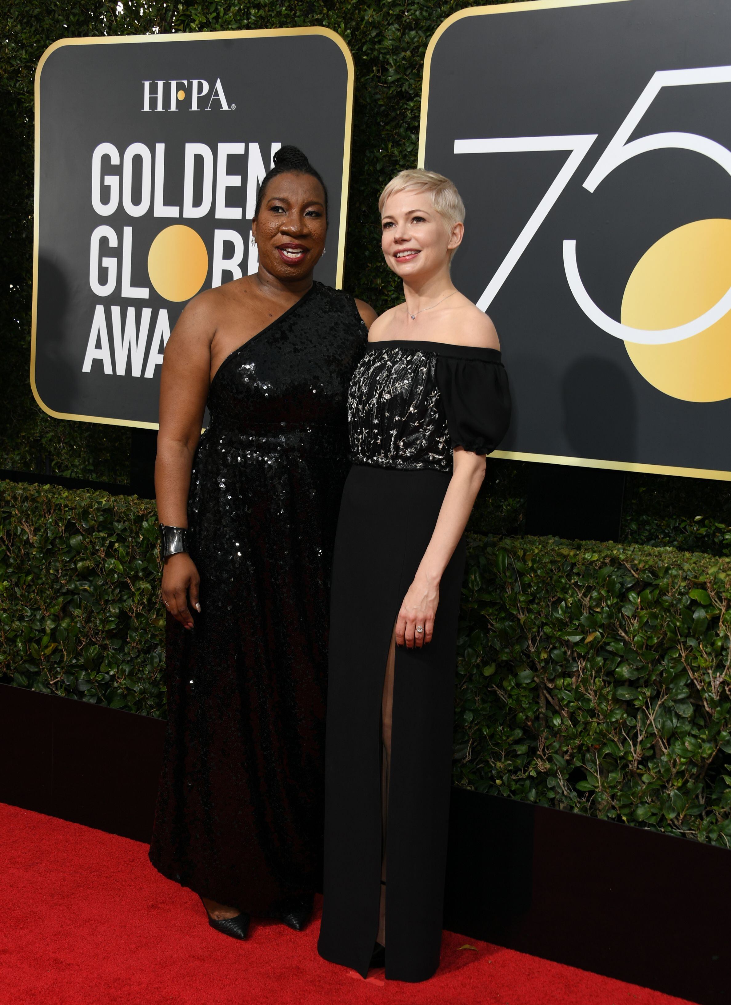 La actriz Michelle Williams caminó la alfombra junto a Tarana Burke, la fundadora del viral movimiento #MeToo que dio voz a las denuncias de acoso en redes sociales.