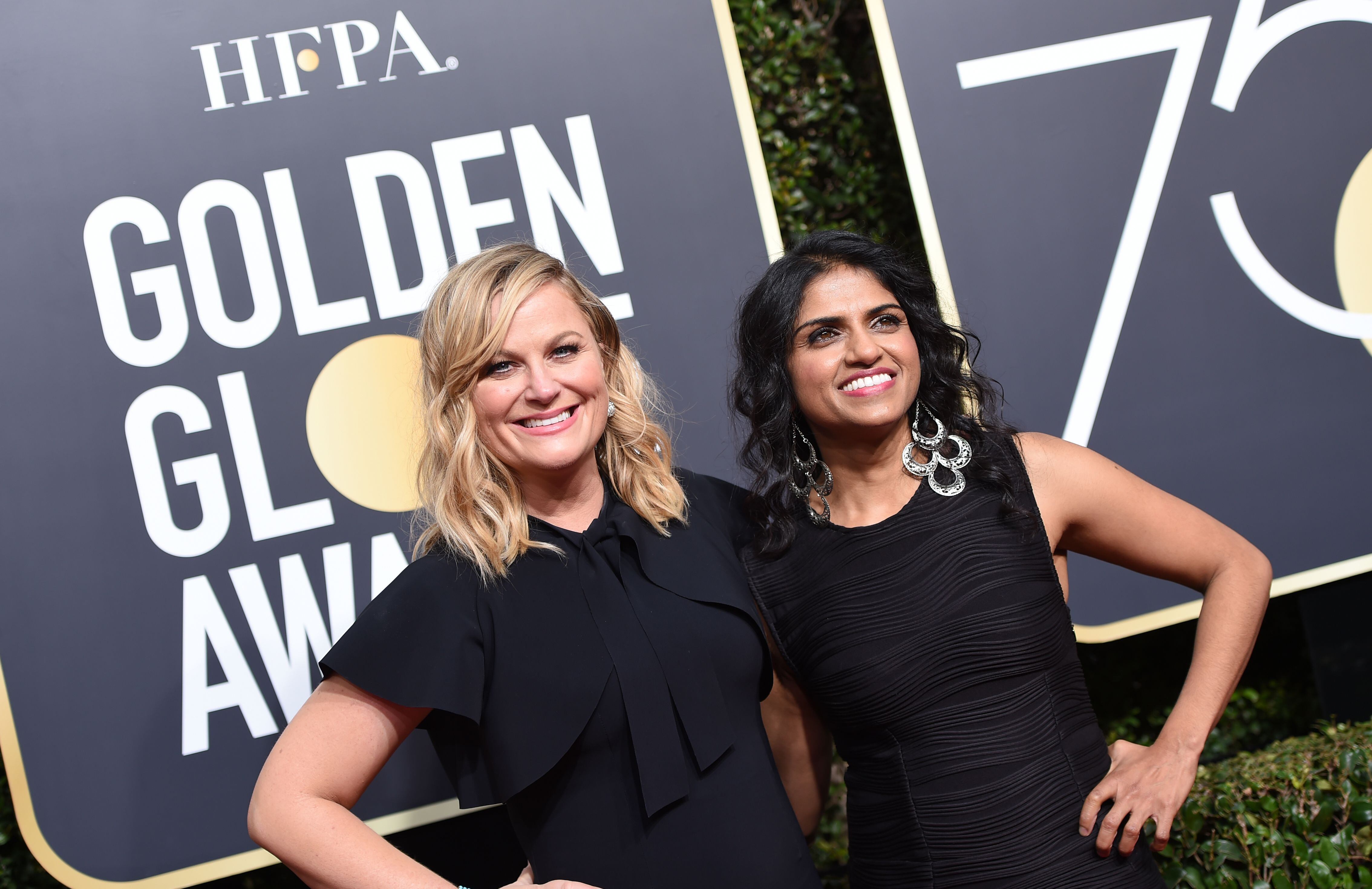 La comediante y actriz Amy Poehler llegó acompañada de Saru Jayaraman, directora de Restaurant Opportunities Center, una organización que vela por los derechos de trabajadores de restaurantes.
