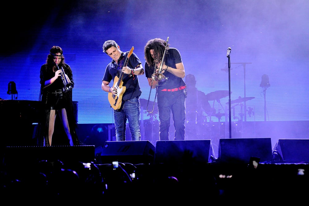 Con un sonido contagioso de jazz latino, los músicos de Sanz entraron uno a uno al escenario del Estadio Nacional la noche de este jueves, ejecutando sus instrumentos. De último en la fila india, el cantante cerraba la grandiosa entrada; el estadio estalló en aplausos.