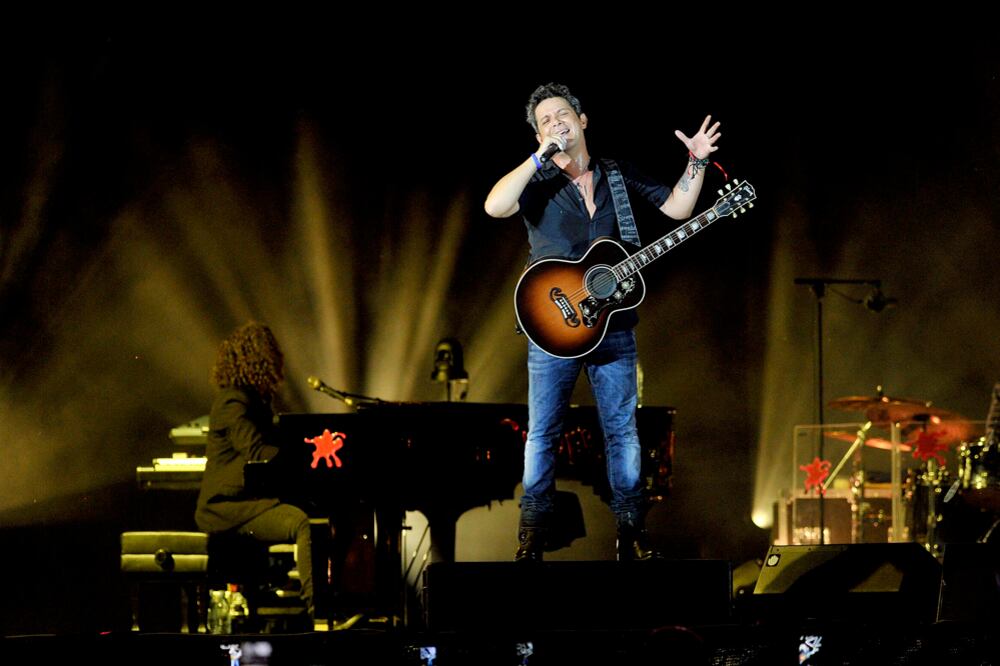 El primer pie en pisar el escenario fue el izquierdo: nada de mal augurio, porque ya se notaba que se sentía bien acuerpado por Dios, su talento, sus músicos y sus fieles seguidores que lo acompañaron en cada letra de sus éxitos de principio a fin.