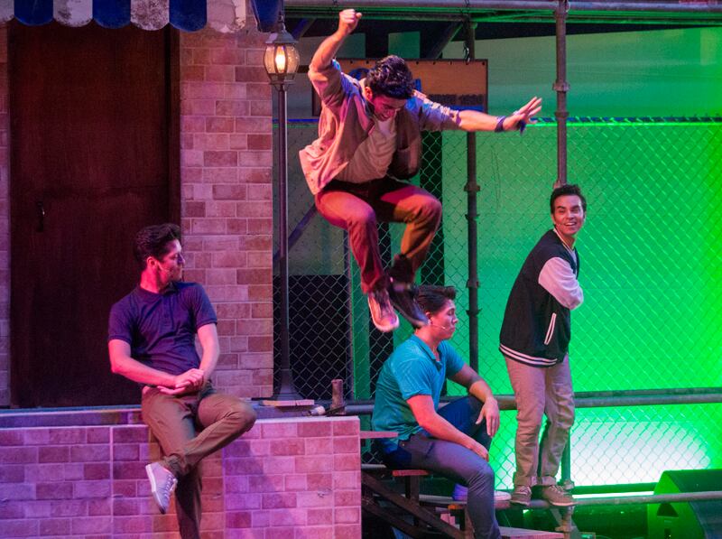 Desde que arranca, exhibe un colorido despliegue de detalles en una escenografía de imponente detalle. Se compone de elementos desplazados ágilmente, que ambientan una Nueva York donde puertorriqueños e hijos de inmigrantes europeos luchan por el control de su nuevo hogar: Estados Unidos. En medio del combate, que oscila entre la ingenuidad y el peligro, María (Silvia Baltodano) queda prendada de Tony (Miguel Mejía), de bandos contrarios y voces de potente ternura.
