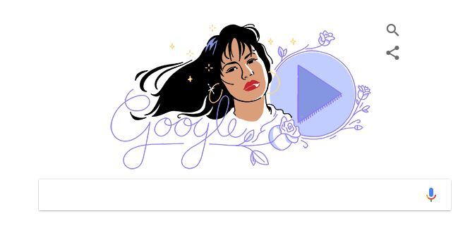 El doodle de la página principal del motor de búsqueda despliega un video animado de la artista interpretando Bidi bidi bom bom, uno de sus mayores éxitos. La animación cuenta la breve trayectoria de Selena Quintanilla, una chica de Corpus Christi, Texas (Estados Unidos) que empezó a cantar y componer desde muy pequeña y, con ayuda de su familia, se convirtió en la mayor estrella en la historia de su género.