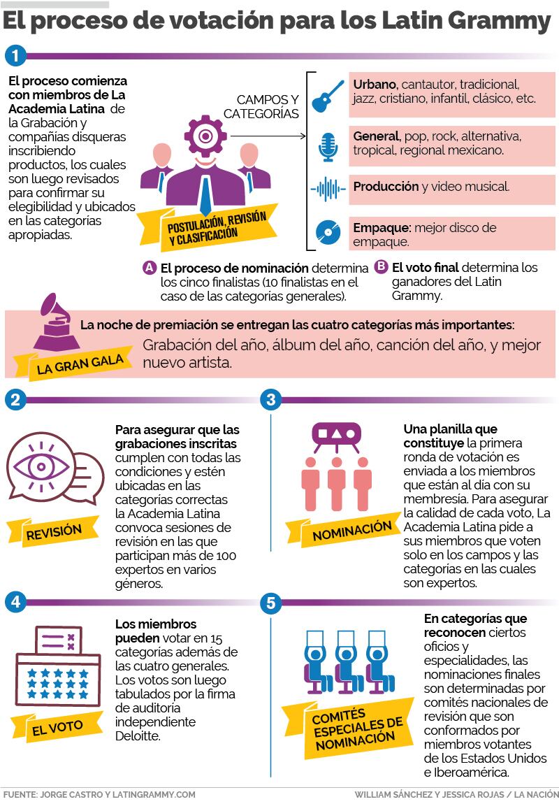De acuerdo con el músico y productor costarricense Jorge Castro, miembro de la Academia Latina de la Grabación (organizadores de los premios), obtener una nominación es un gran privilegio. “Un Grammy en la carrera de un artista pesa muchísimo. Es un premio que entregan los colegas, es un reconocimiento de la industria, por eso es una gran referencia”, comentó Castro, quien se encuentra en Las Vegas para asistir a la gala.