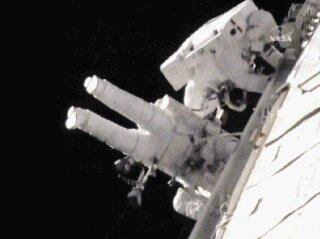 La caminata había comenzado a las 7:24 a. m., con una hora de retraso para arreglar el sellado de la bolsa de agua del traje espacial de Satcher.