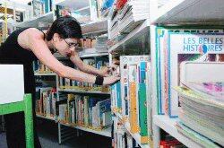 Silvia Díaz, de la mediateca de la Alianza Francesa, seleccionó ayer textos para entregarle a los lectores durante la fiesta de la lectura. | CARLOS LEÓN