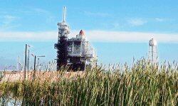 Trabajadores de la NASA quitan el tractor de la plataforma de lanzamiento del transbordador Atlantis ante la llegada del huracán Ernesto. | EFE (GARY I ROTHSTEIN)