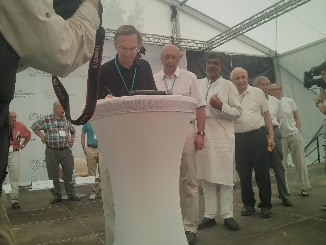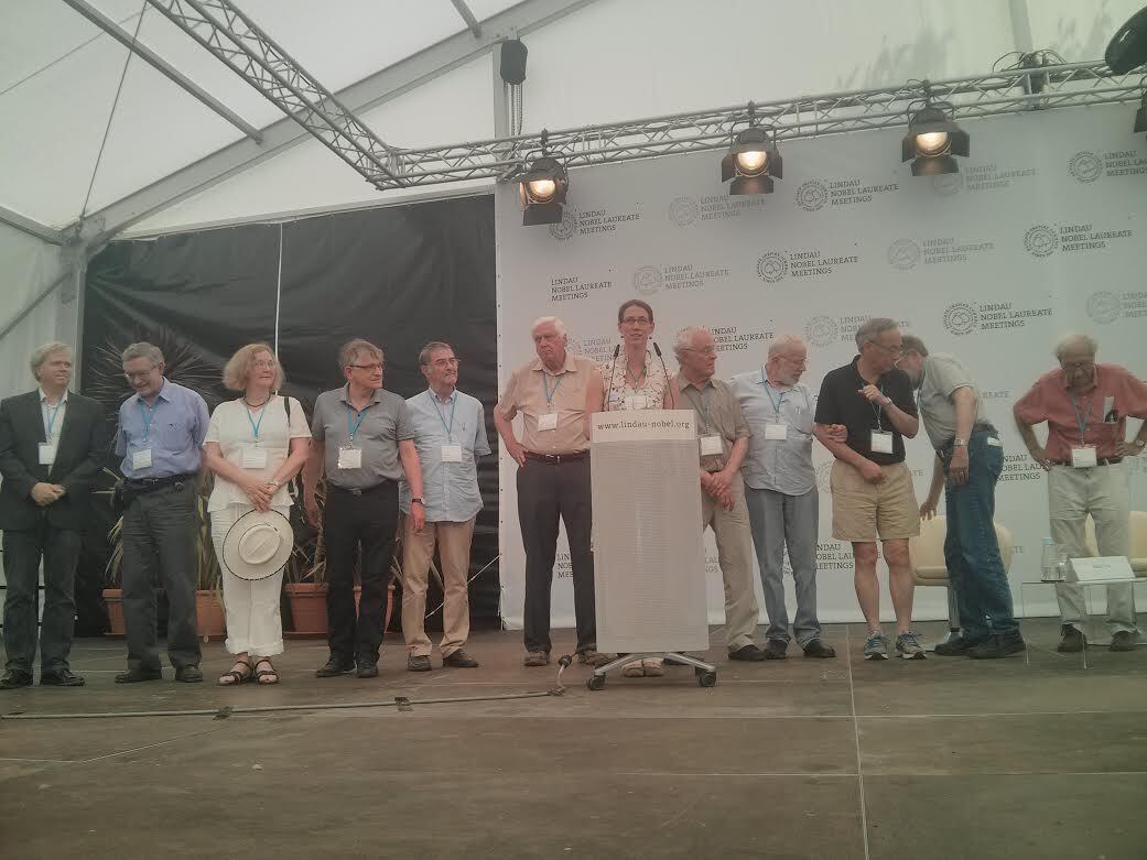 Apoyo al informe IPCC. El manifiesto de los nobel es breve y dice literalmente: "Los científicos que aquí firmamos, quienes hemos sido galardonados con premio nobeles, hemos venido a las orillas del Lago Constanza en el sur de Alemania, para compartir conocimientos con jóvenes investigadores prometedores que como nosotros vienen de todas partes del mundo".