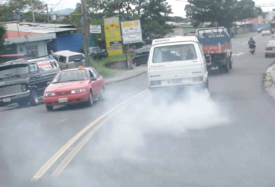 En Costa Rica, la principal fuente de partículas contaminantes es el humo que sale de las muflas de los vehículos de combustible. En una nube de este tipo hay miles de estas partículas.