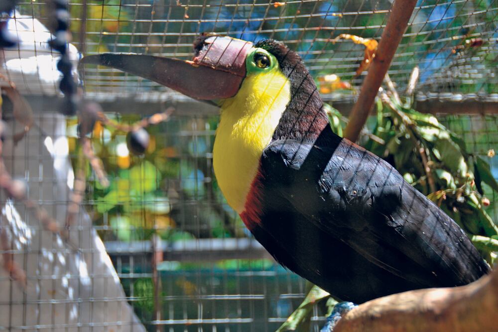 Grecia, nombre con que bautizaron al tucán, llegó a este centro ubicado en La Garita de Alajuela tras ser rescatado por funcionarios del Ministerio de Ambiente (Minae) luego de ser golpeado por un grupo de jóvenes con un palo de madera, lo cual provocó que perdiera gran parte de su pico.