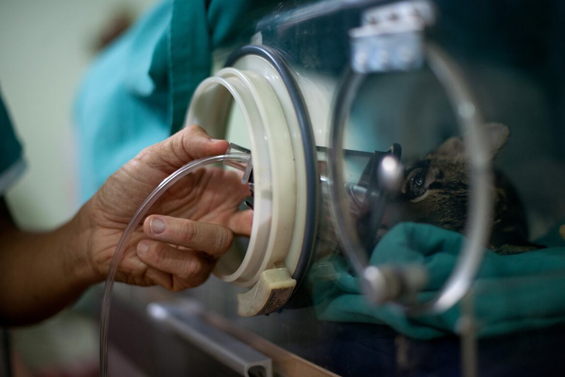 En observación. Al retirar la anestesia y darle oxígeno, el felino despertó a los 15 minutos.