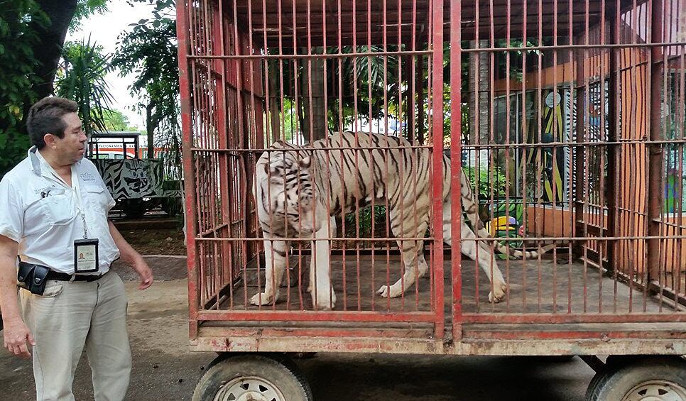 Conseguir un tigre en Ciudad de México está actualmente al alcance de todo aquel que disponga de $2.000 a raíz de los efectos de una ley contra el uso de fieras en los circos, que ha llevado a la industria a rematar sus animales por no poder hacerse cargo de ellos. (AFP)