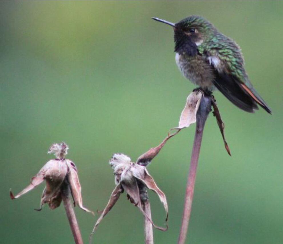 Mas la sorpresa la dieron las especies montañés coligris (Lampornis castaneoventris) y el colibrí gorginaranja (Selasphorus scintilla).