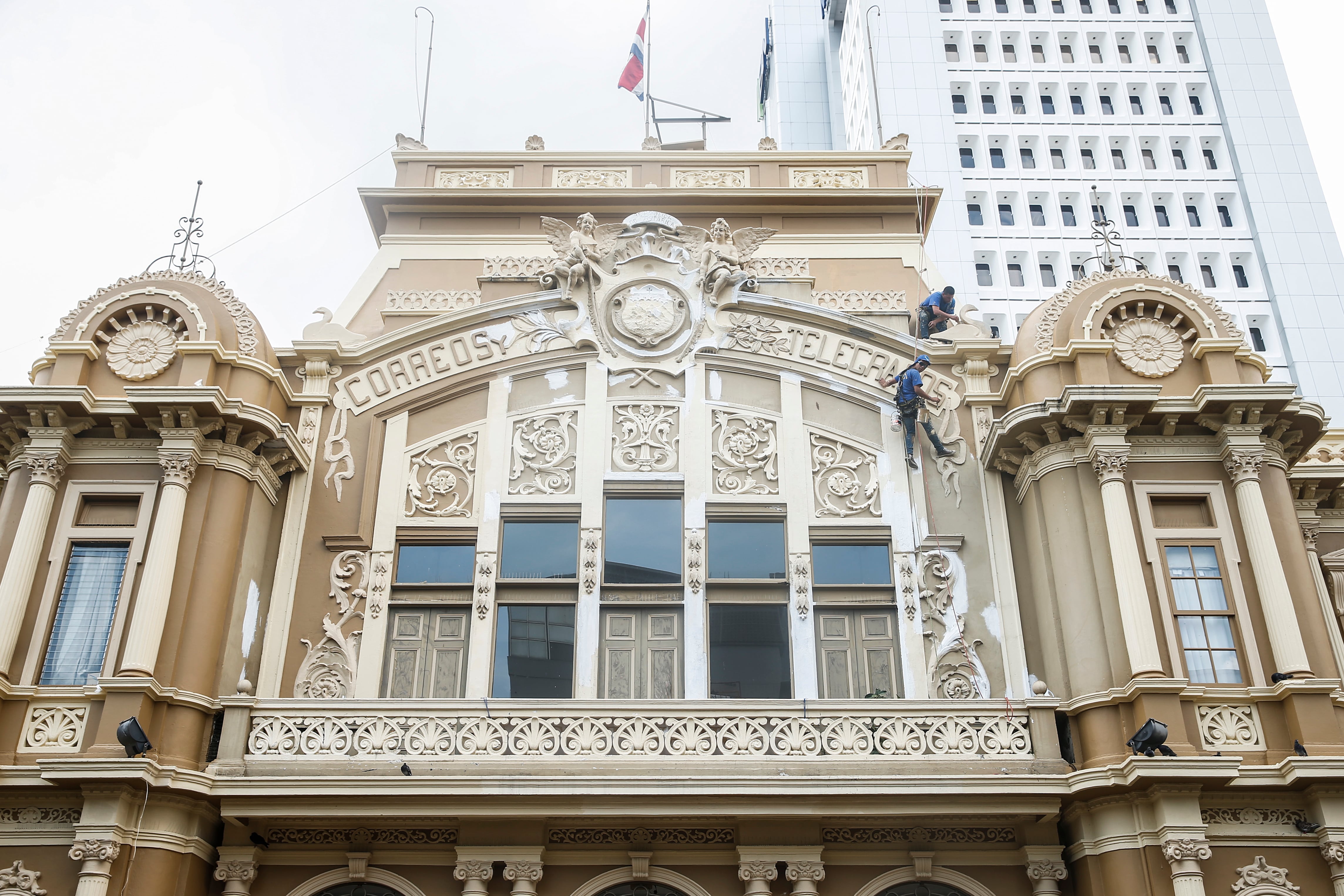 Se trata del histórico edificio de Correos y Telégrafos de Costa Rica, cuya fachada está siendo reparada y pintada por completo, previo a que esta estructura llegue, en octubre, a un siglo de existencia.