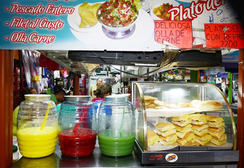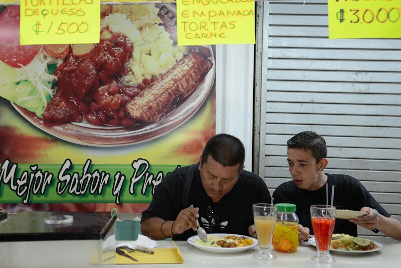 Arriba: Los costarricenses aumentaron su consumo de comidas sanas, pero también el de comidas dañinas, especialmente de grasas y azúcares. José Alfredo Araya Vásquez y José Rafael Rodríguez Campos almorzaron un tradicional casado este viernes en el Mercado Central. Abajo: Los refrescos azucarados son uno de los responsables del aumento del azúcar en la dieta del costarricense. | CARLOS GONZÁLEZ (CARLOS GONZALEZ CARBALLO)
