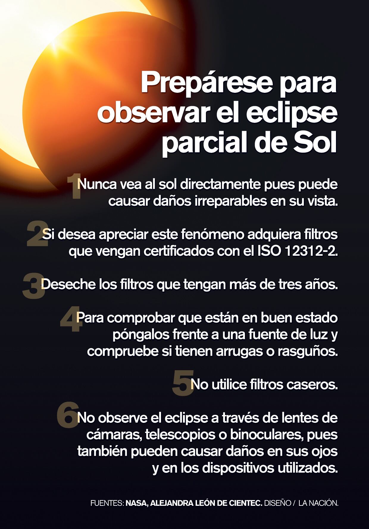 Los costarricenses podrán apreciar el eclipse parcial de sol del próximo lunes 21 de agosto, que sucederá entre las 12:04 p.m. y las 2:22 p.m.